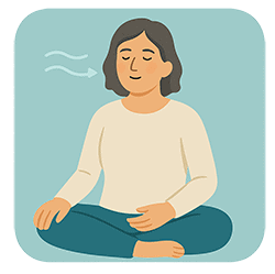 Atme 4 Sekunden lang durch die Nase ein, halte den Atem 7 Sekunden, und atme 8 Sekunden langsam durch den Mund wieder aus.