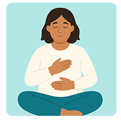 Lege eine Hand auf die Brust, die andere auf den Bauch.